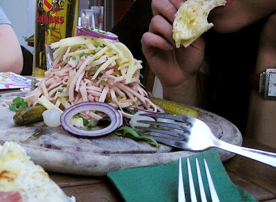 One really common dish is this pizza on a giant cracker. Amazing.