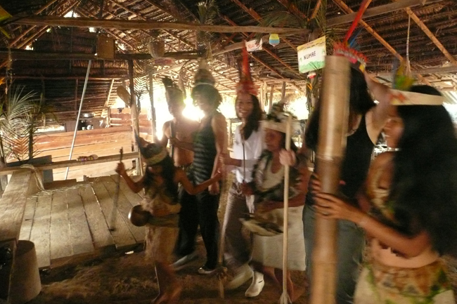 pin it!We visited an “indigenous community” which was actually a few normal people that put on costumes from time to time. They taught us some words, put feather headpieces on us, and had us chant and dance with them. I suspect they usually entertain larger groups of visitors, but that day it was just the three of us. They were super sweet and genuinely glad to have visitors.