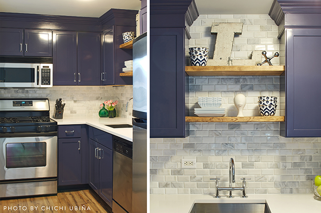 This was also my first attempt at installing subway tile in a real interior (as opposed to on a set.) The subway tiles are small and light enough that they’re relatively easy to install. I just did all the math first, then tiled in sections starting from the bottom. The best part about subway tile is that you don’t have to use any spacers. They are designed to have a 1/16″ gap between each tile. I would definitely consider doing subway tile again by myself in the future, because it’s on a wall as opposed to the floor.